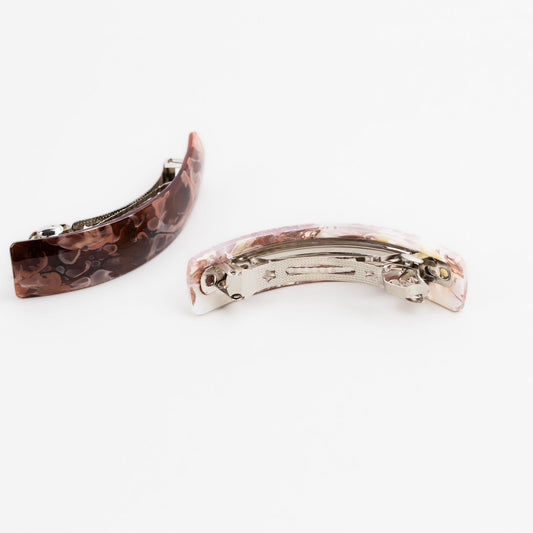 Agrafe franțuzești cu formă dreptunghiulară, imprimeu artist paint, textură marmorată lucioasă, set 2 buc - Maro, Bej