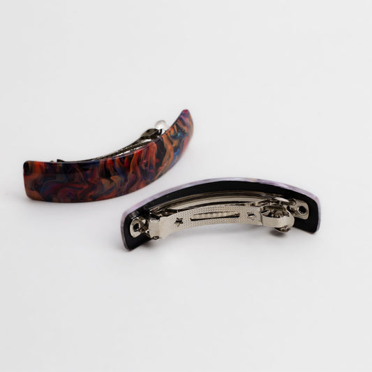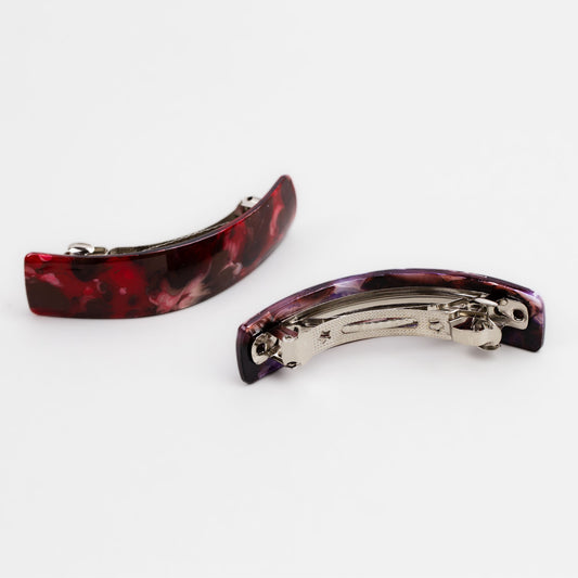 Agrafe franțuzești cu formă eliptică, imprimeu artist paint, textură marmorată lucioasă, set 2 buc - Mov, Roșu, Maro