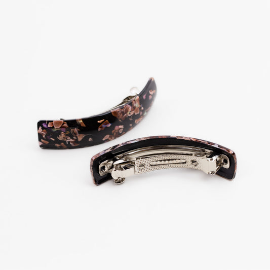 Agrafe franțuzești cu formă dreptunghiulară, imprimeu cu elemente sidefate, textură marmorată lucioasă, set 2 buc - Negru, Maro