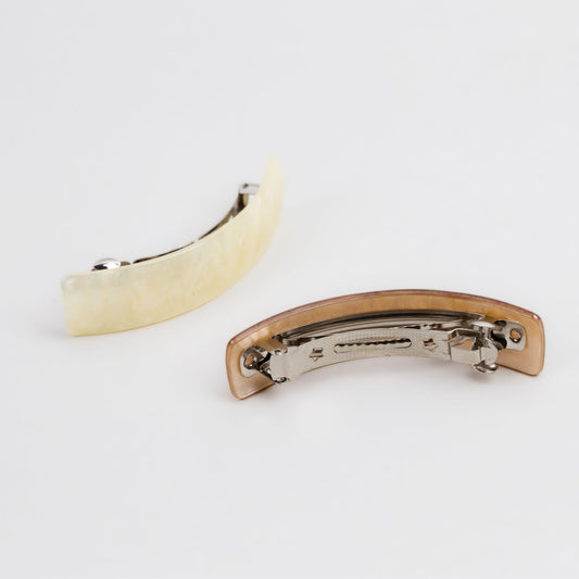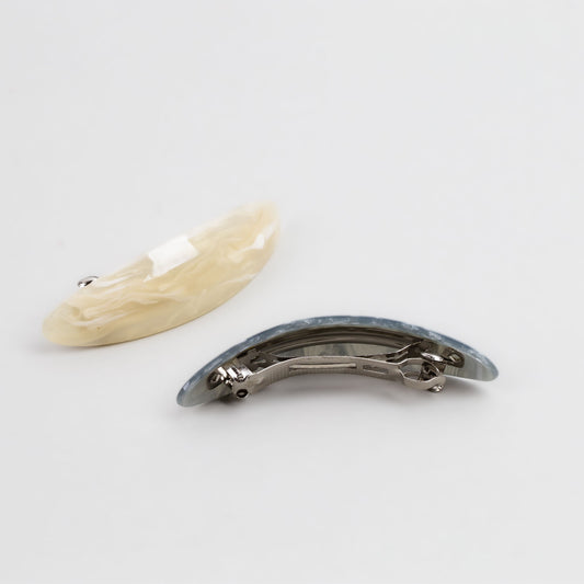 Agrafe franțuzești cu formă eliptică, imprimeu uni, textură marmorată lucioasă, set 2 buc - Alb, Bej