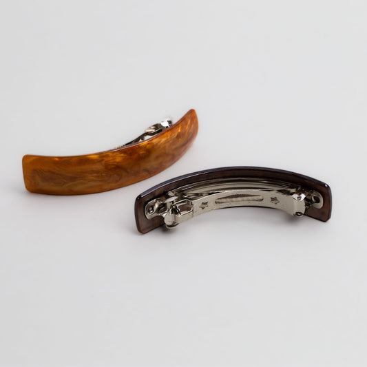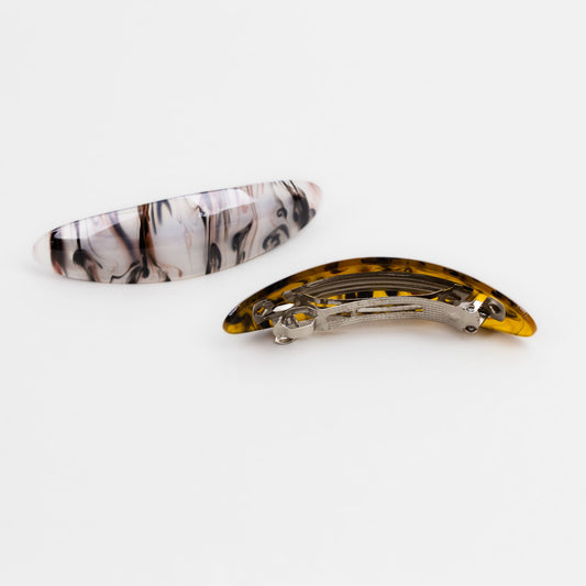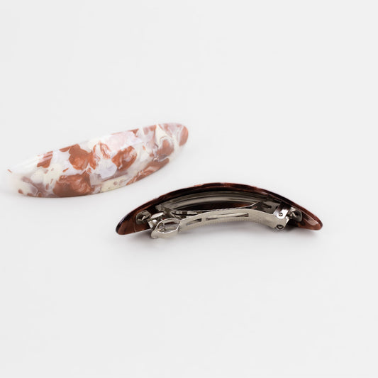 Agrafe franțuzești cu formă eliptică, imprimeu uni, textură marmorată lucioasă, set 2 buc - Maro, Alb