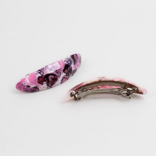 Agrafe franțuzești cu formă eliptică, imprimeu artist paint, textură marmorată lucioasă, set 2 buc - Roz, Mov, Alb