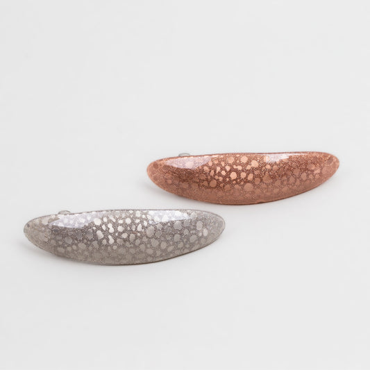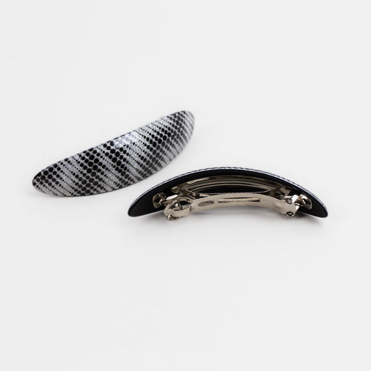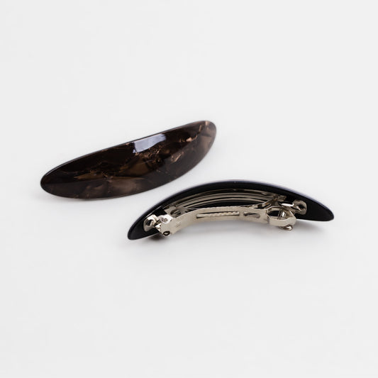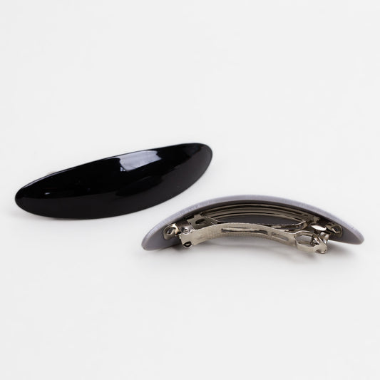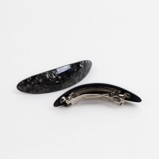 Agrafe franțuzești cu formă eliptică, imprimeu uni, textură marmorată lucioasă, set 2 buc - Negru, Gri