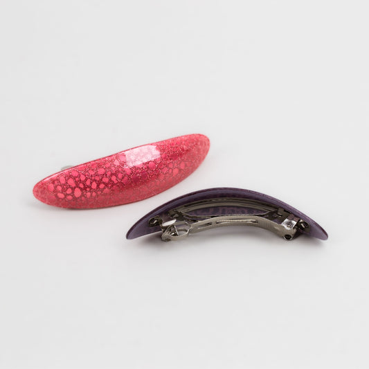 Agrafe franțuzești cu formă eliptică, imprimeu cu elemente sidefate, textură marmorată lucioasă, set 2 buc - Roz, Roșu