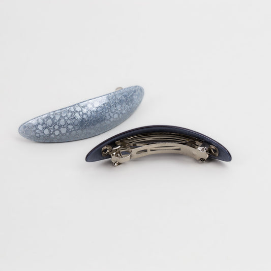 Agrafe franțuzești cu formă eliptică, imprimeu foam, textură marmorată sclipitoare, set 2 buc - Negru, Albastru