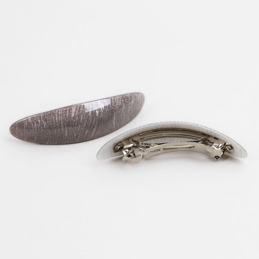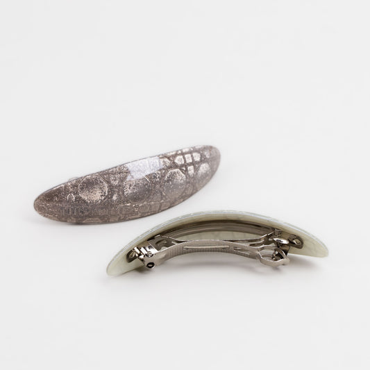 Agrafe franțuzești cu formă eliptică, imprimeu striații, textură marmorată sclipitoare, set 2 buc - Argintiu Mix