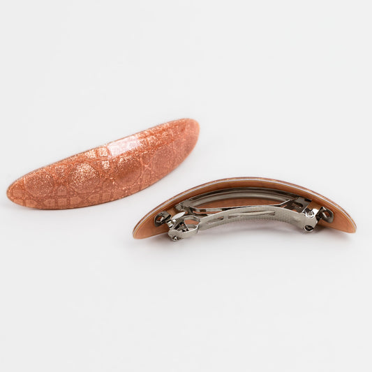 Agrafe franțuzești cu formă eliptică, imprimeu forme geometrice, textură marmorată sclipitoare, set 2 buc - Maro