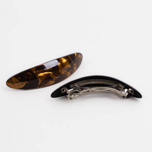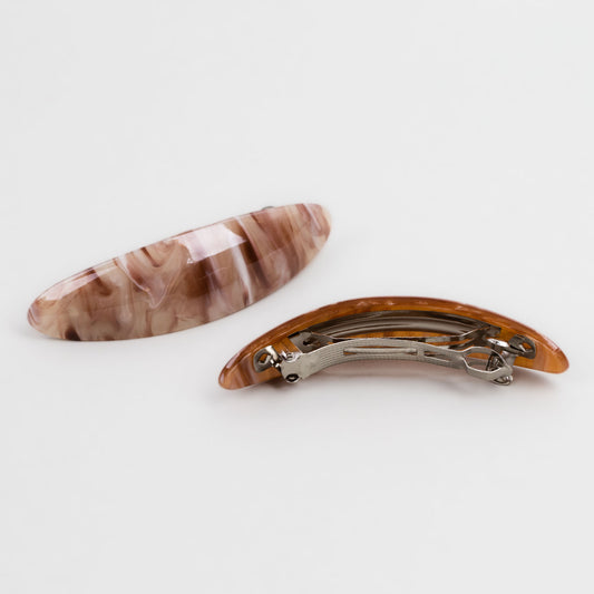 Agrafe franțuzești cu formă eliptică, imprimeu artist paint, textură marmorată lucioasă, set 2 buc - Maro, Bej