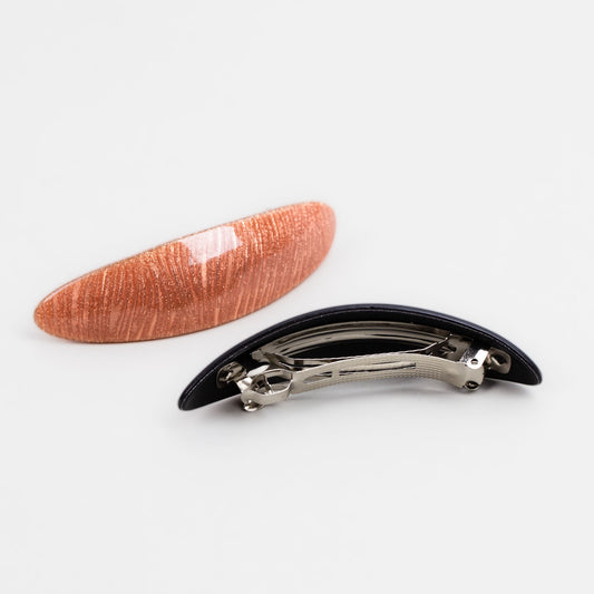 Agrafe franțuzești cu formă eliptică, imprimeu striații, textură marmorată sclipitoare, set 2 buc - Negru, Portocaliu
