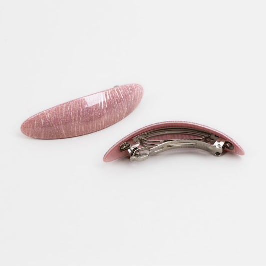 Agrafe franțuzești cu formă eliptică, imprimeu striații, textură marmorată sclipitoare, set 2 buc - Roz Mix
