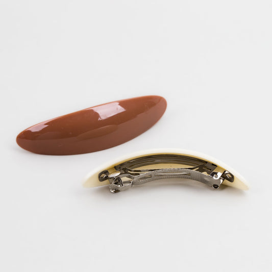 Agrafe franțuzești cu formă eliptică, simple, set 2 buc - Negru, Maro