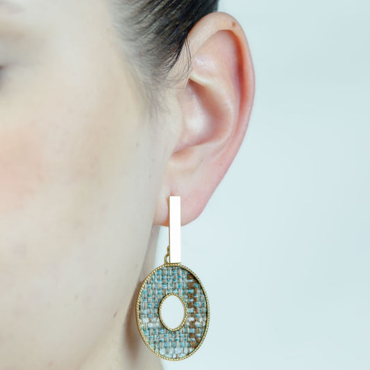 Cercei atlantis cu accent geometric auriu și piatră mare - Albastru
