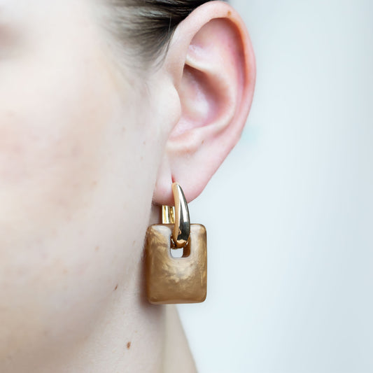 Cercei aurii tip verigă cu accent color glossy - Bej