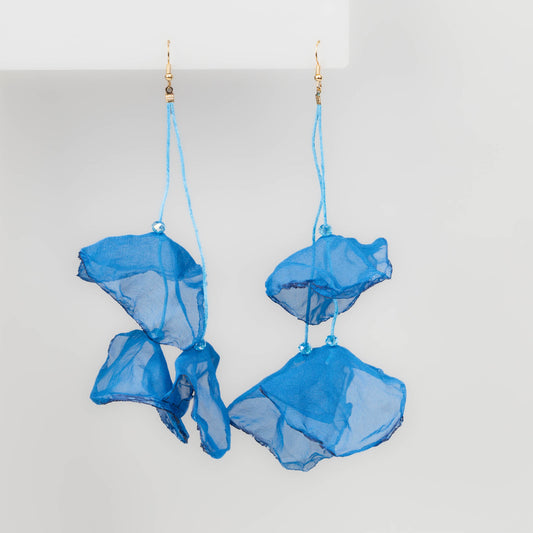 Cercei extra lungi și ușori cu petale delicate din material textil - Albastru
