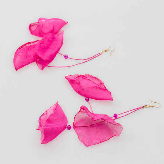 Cercei extra lungi și ușori cu petale delicate din material textil - Fucsia