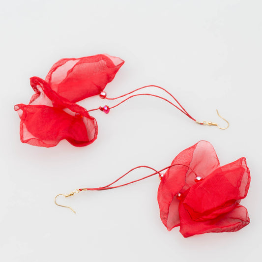 Cercei extra lungi și ușori cu petale delicate din material textil - Roșu