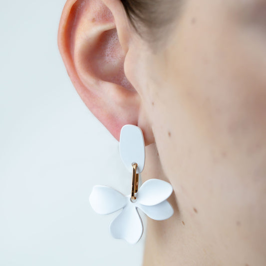 Cercei floare azalea cu textură de silicon - Alb