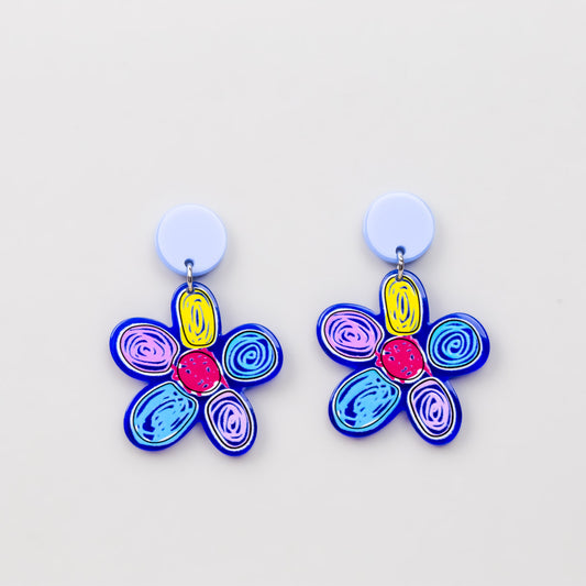 Cercei flori bonbon cu perle, set 2 - Albastru