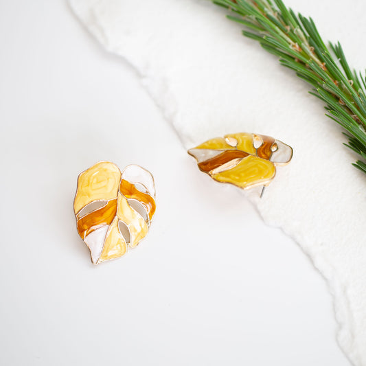 Cercei frunze lucioase, set 2 - Alb, Maro