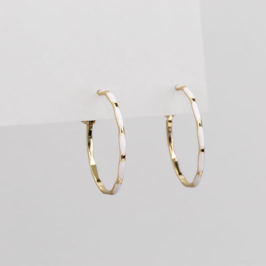Cercei rotunzi aurii cu mărgele mici spiralate - Alb