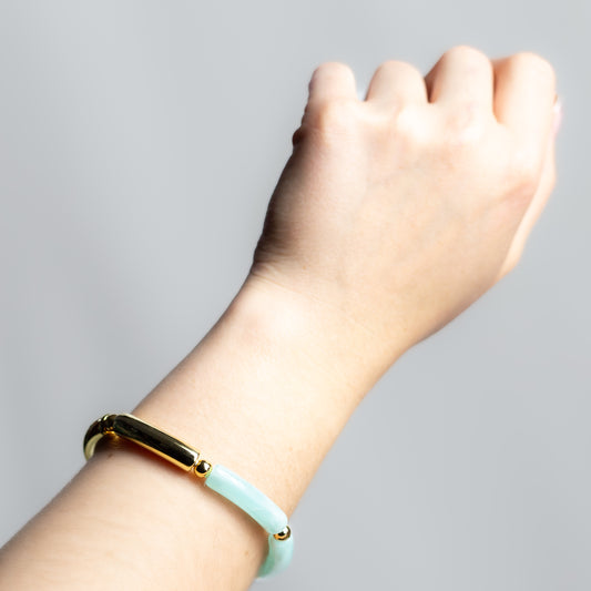 Brățară elastică cu secțiuni cilindrice și biluțe - Auriu