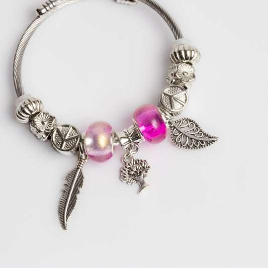 Brățară reglabilă magic scent cu charm-uri - Argintiu, Roz