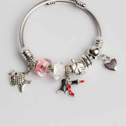 Brățară fixă ajustabilă cu charmuri - Argintiu