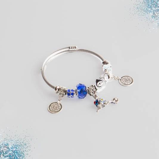 Brățară reglabilă lucky tea cu charm-uri - Argintiu, Albastru