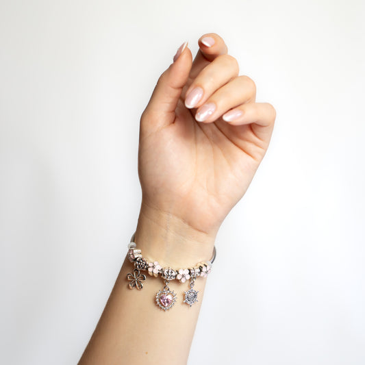 Brățară reglabilă sea of love cu charm-uri și pietre - Argintiu, Roz