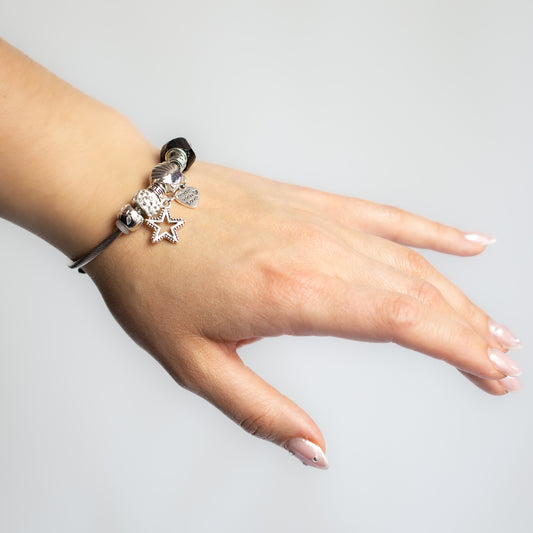Brățară reglabilă starry night cu charm-uri și pietre - Argintiu