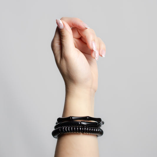 Brățări elastice cu secțiuni geometrice trio arches, set 3 - Negru