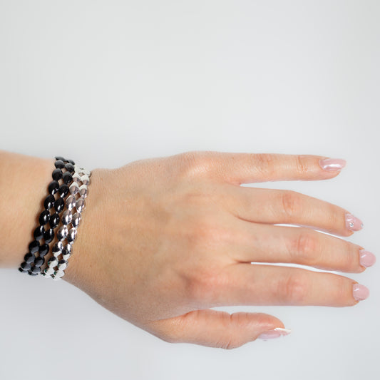 Brățări elastice cu secțiuni geometrice trio arches, set 3 - Argintiu