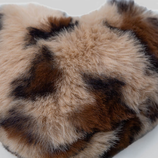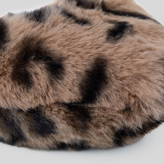 Breloc chei pufos în formă de inimă cu animal print - Bej caramel