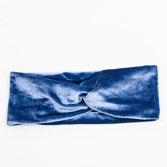 Bentiță de păr cu nod tip turban din catifea - Albastru