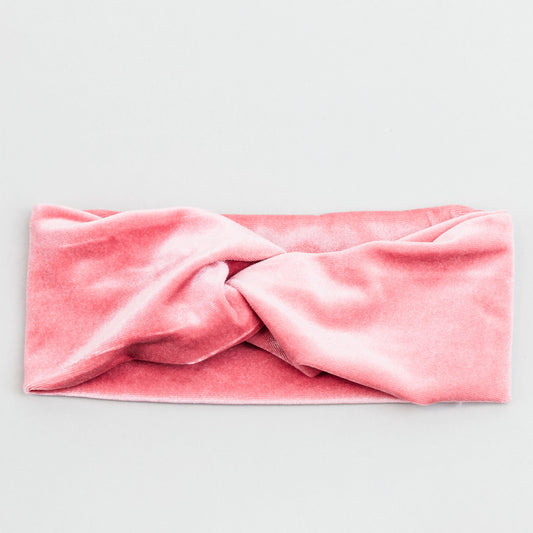 Bentiță de păr cu nod tip turban din catifea - Roz