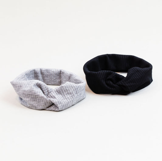 Bentiță de păr cu nod tip turban și dungi din bumbac, set 2 buc - Negru, Gri