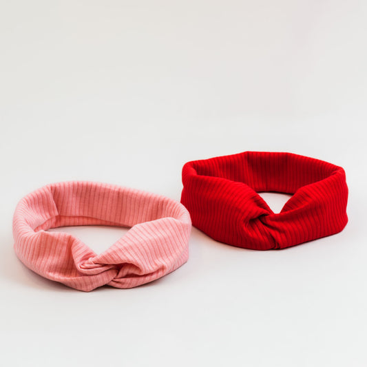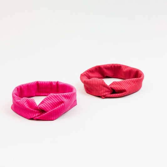 Bentiță de păr cu nod tip turban și dungi din bumbac, set 2 buc - Roz, Roșu
