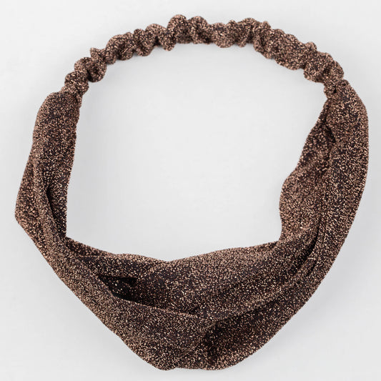 Bentiță de păr cu nod tip turban și fir sclipitor - Maro, Arămiu