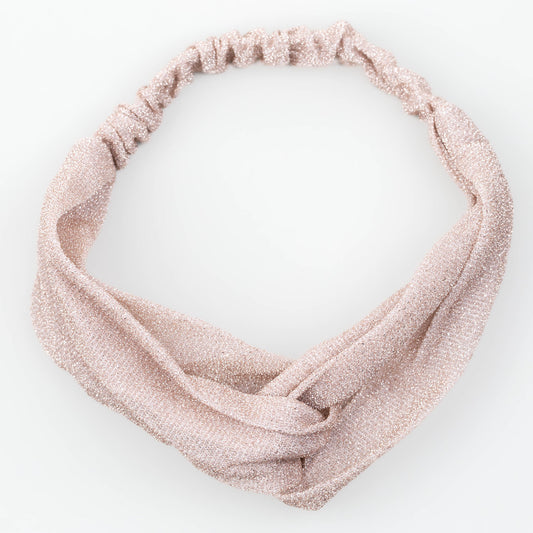 Bentiță de păr cu nod tip turban și fir sclipitor - Roz
