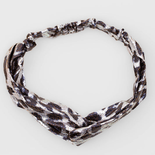 Bentiță de păr cu nod tip turban și material texturat animal print - Argintiu