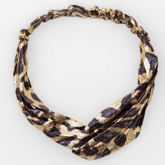 Bentiță de păr cu nod tip turban și material texturat animal print - Auriu