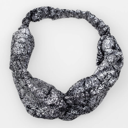 Bentiță de păr cu nod tip turban și textură cu efect metalizat - Argintiu