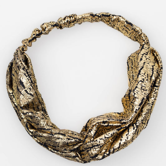 Bentiță de păr cu nod tip turban și textură cu efect metalizat - Auriu