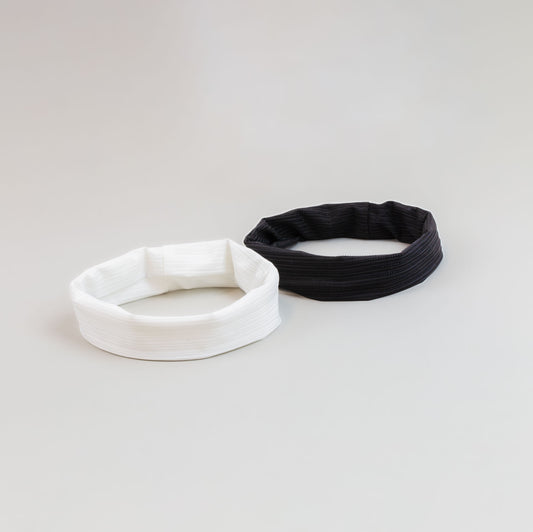 Bentiță de păr cu nod tip turban simplă, din bumbac, set 2 buc - Alb, Negru