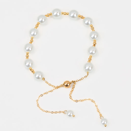 Stoc epuizatBrățară reglabilă cu perle și lănțișor - Auriu