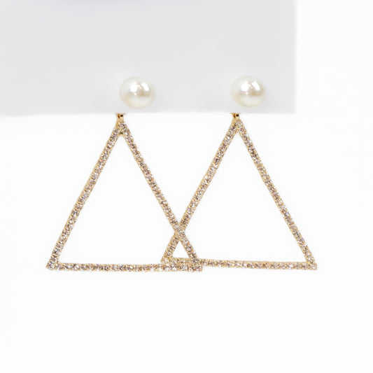Cercei cu perle și pandantiv triunghi cu ștrasuri - Auriu