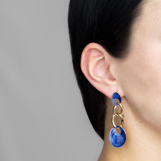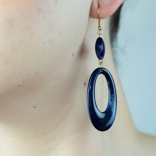 Cercei lungi ovali cu textură fină marmorată - Albastru