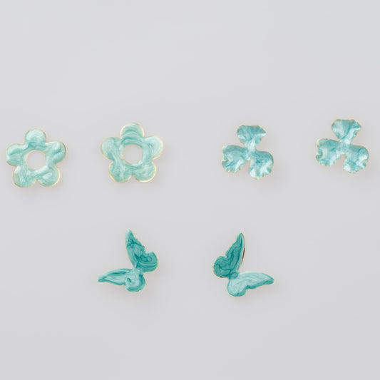 Cercei glossy flori și fluturi, set 3 - Turcoaz