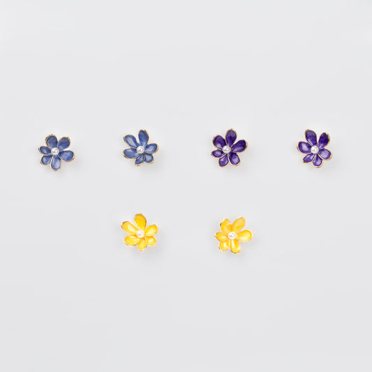 Cercei glossy flori suave cu perle, set 3 - French Mix