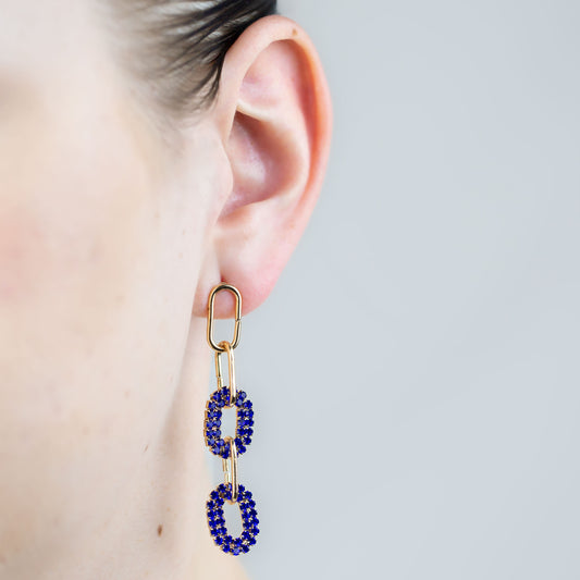 Cercei lungi cu zale aurii și ștrasuri colorate - Albastru